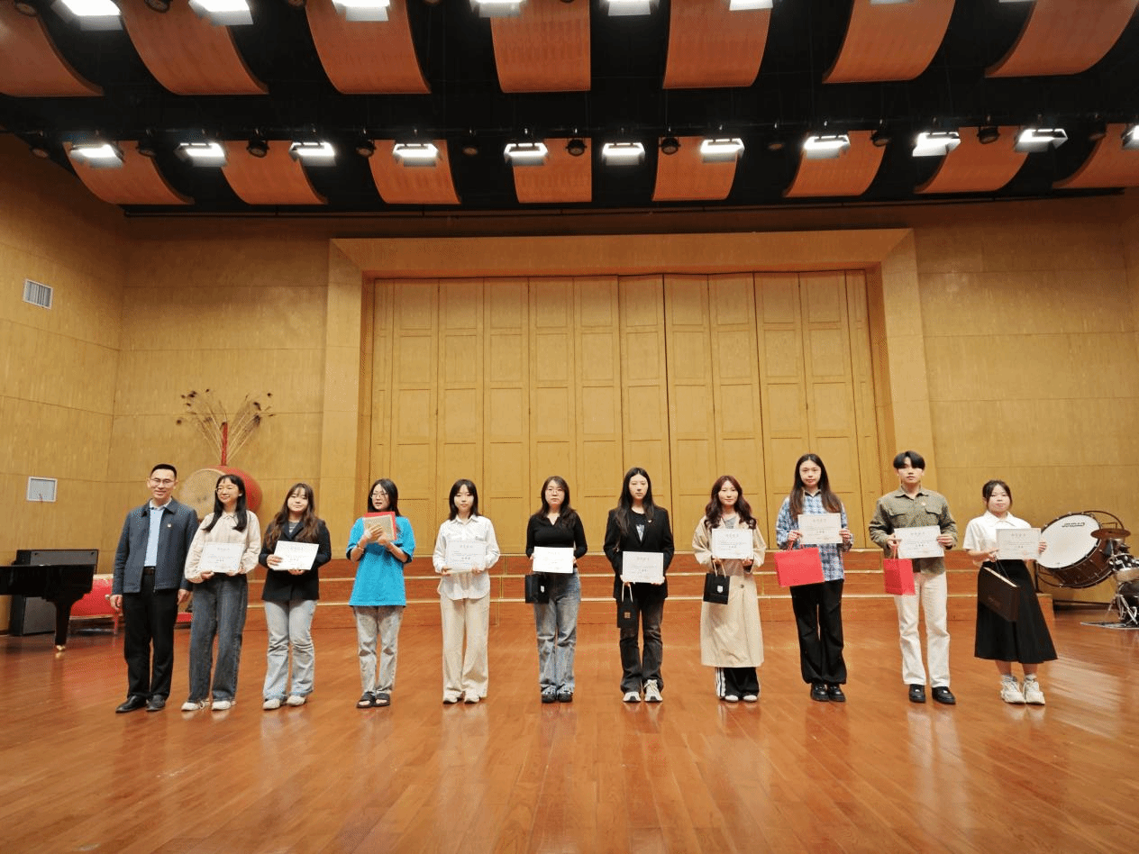 会议第三项,学院党委书记冷再心、学院党委副书记边建华为四月学习强国积分赛个人获奖学生颁奖。