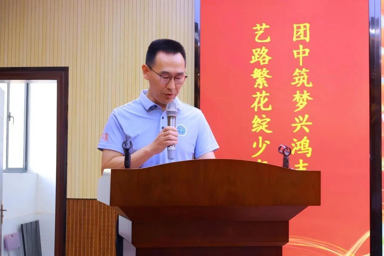 会议伊始,由掇刀区团林中学校长李玉华致欢迎辞。李校长对团林中学的基础状况做了介绍,并对九里阳光艺术支教团的到来表示诚挚欢迎与感谢。李玉华校长指出:艺术是心灵的窗户,更是梦想的翅膀。 他特别强调,乡村学校对优质美育资源有着迫切需求,期待九里阳光此行能为掇刀区的孩子们播撒艺术火种,点燃梦想之光,带来切实的美育滋养。