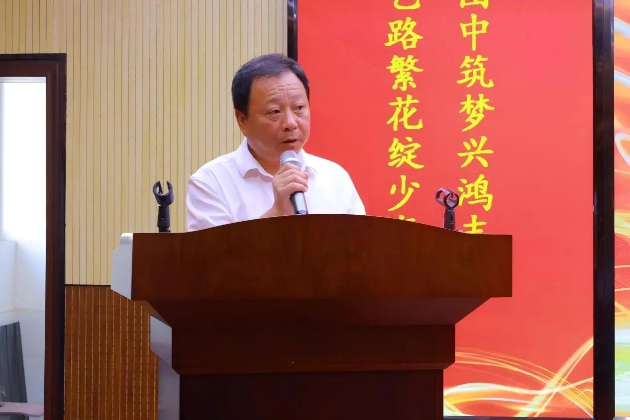 党委书记冷再心致辞。书记介绍了学院及“九里阳光”支教项目的背景。他回顾了团队自2011年成立以来的历程,强调其14年来始终活跃在艺术支教一线,致力于助力中小学美育教育和乡村建设,并曾获评团中央“七彩假期志愿服务示范团队”称号。随后书记对此次支教活动提出展望与要求:希望同学们将安全放在首位,遵从纪律,拿出学习与教育的热情,虚心请教,大力发展美育教育与乡村支持事业。在致辞完毕后,书记宣布亚洲色吧