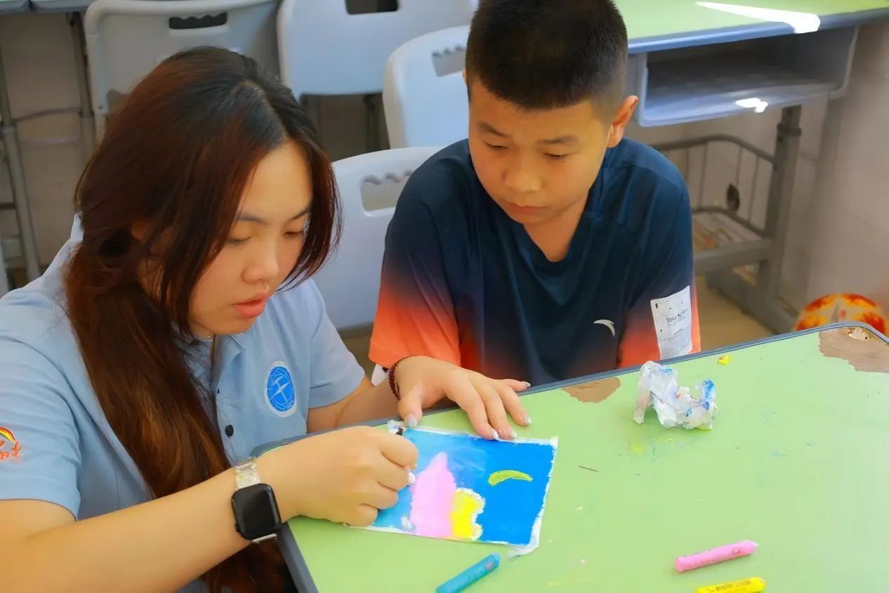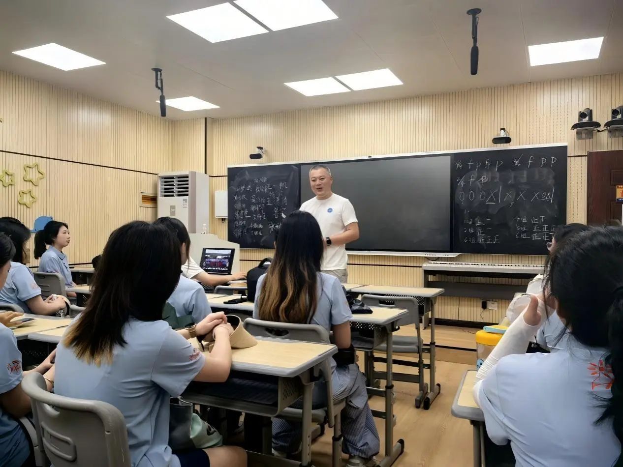 支教活动开展的第一天,各班级匠心设计了“击鼓传花”、“随机舞蹈”等趣味横生的互动游戏。跃动的身影间,师生的情谊迅速升温。 教室里洋溢着探索的热情与对艺术知识的浓厚兴趣,欢声笑语汇成一片学习的海洋。