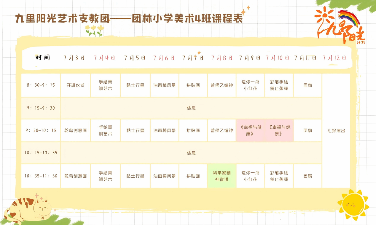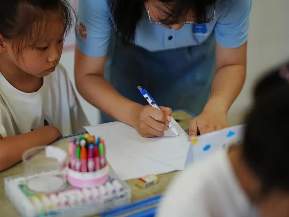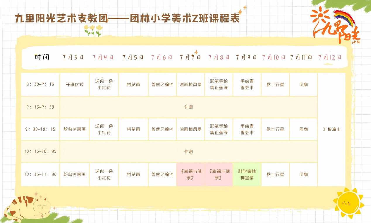 “九里阳光”艺术支教团教学有序进行。继随县美育之花盛放,支教团怀揣满腔热忱,于7月3日在荆门市掇刀区团林中小学继续艺术支教之旅,致力将优质美育资源注入乡村教育沃土,为孩子们打开一扇通往艺术世界的大门。