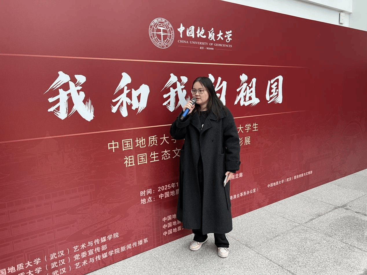 与相关职能部门的共同努力。他特别提到,学校长期重视实践教学,同学们在秭归实习、野外考察中锤炼了意志,也深化了对祖国生态文明建设的理解。此次展出的作品,正是这些实践成果的生动体现,展现了“我和我的祖国”之间深厚的情感联结。