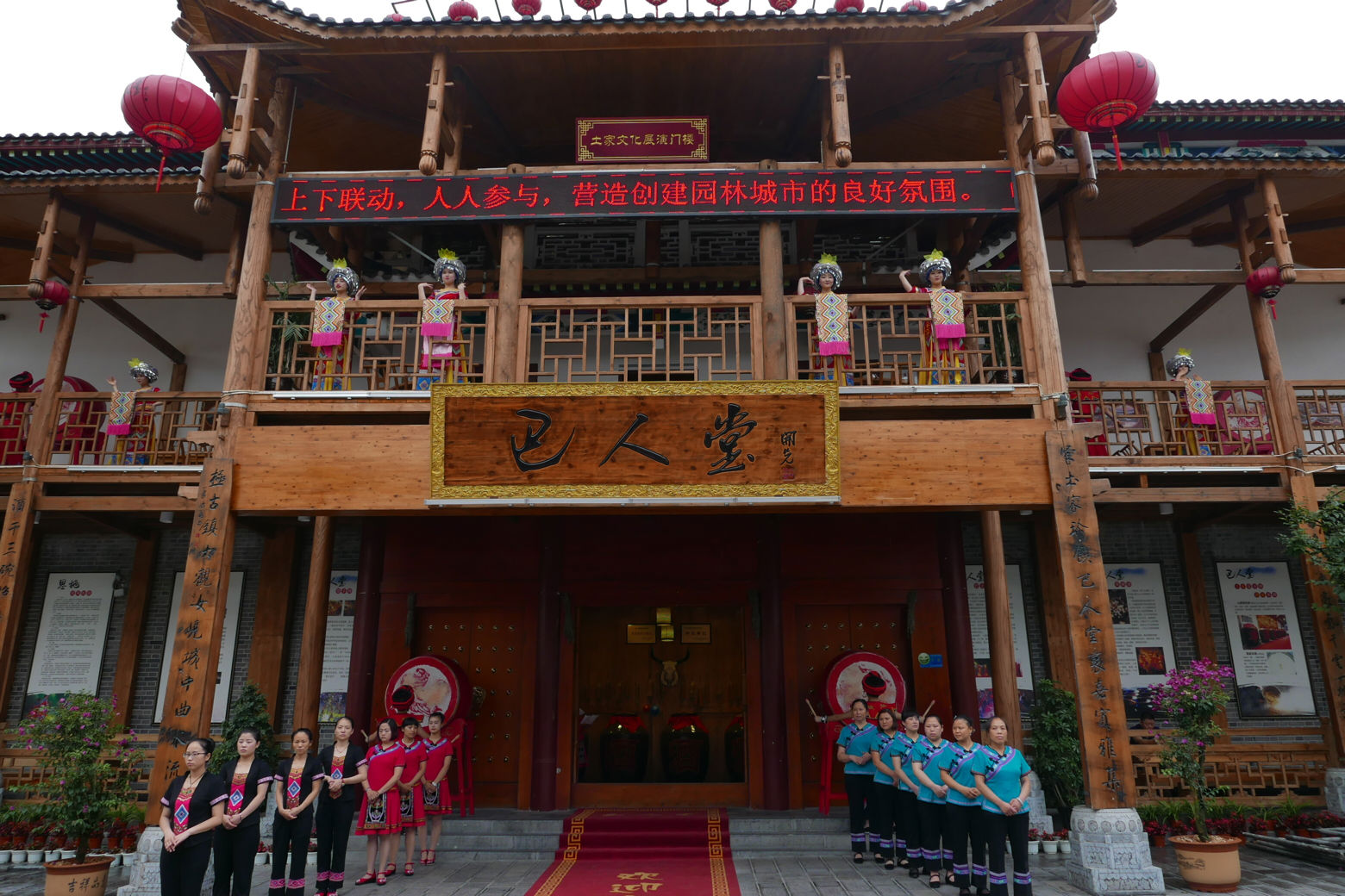 在接下来的自由活动时间,同学们结伴来到了小吃街,恩施果然不但景美人热情,小吃也非常别具特色风味。随后到晚饭时间时,我们来到了一个很有特色的餐厅名叫巴人堂,在这里可以喝到极具特色的摔碗酒,在享受晚餐的同时,餐厅也安排了具有特色的歌舞表演,让人心情愉悦。晚饭后一边闲逛一边感受女儿城的风土人情,热情的歌舞,别具特色的吊脚楼,还有喜庆的抬花轿表演让我们洋溢在红火热情的女儿城里。