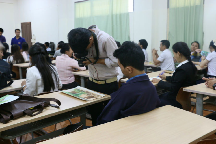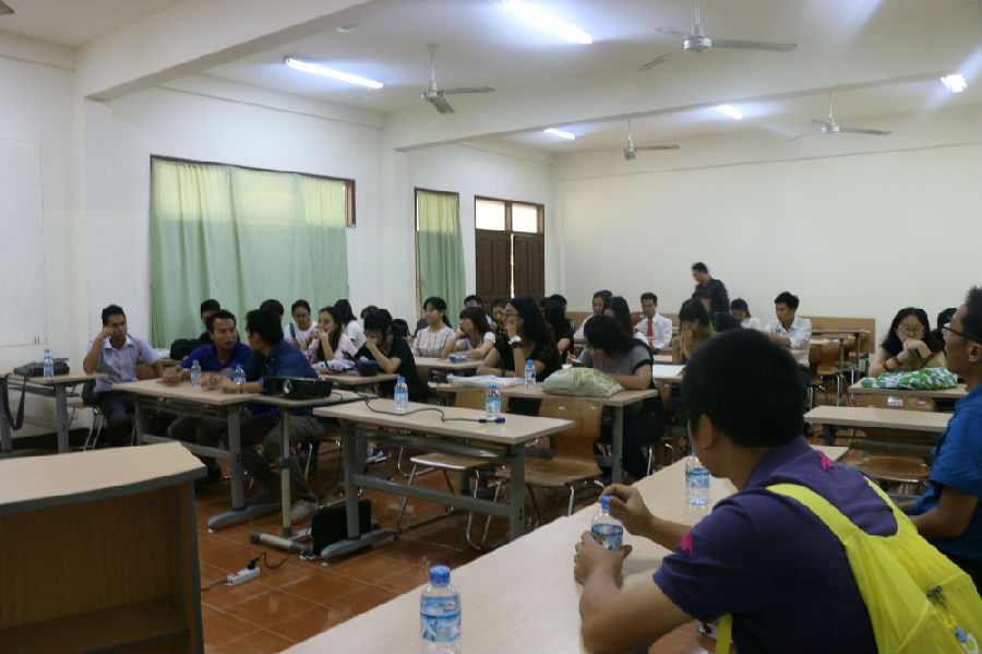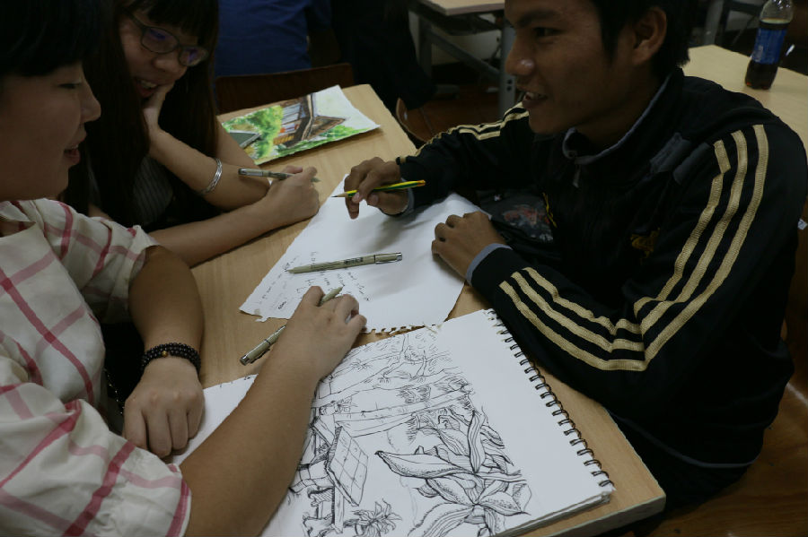 九月九日,老挝写生组受老挝苏发努冯大学建筑学院邀请前往该校交流,交流活动主要包括:首先,写生组教师为建筑学院师生进行专业讲座,以写生组同学作品为例介绍亚洲色吧 艺术教育的教学思路和认识方法,其次,建筑学院教师陪同写生组师生参观学院教学设施及环境,最后建筑学院同学与写生组同学分组交流。