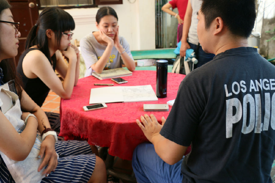 (摄影 王铭毓)9月6日上午,老挝写生实习小组老师和同学们进行了第一次写生讲评。写生组老师以前一天速写作业为对象阐述了对速写的认识和看法,希望帮助大家更自由更自主的表达所见所感,反映当地特点,展现个体感受。随后,写生组展开写生活动。