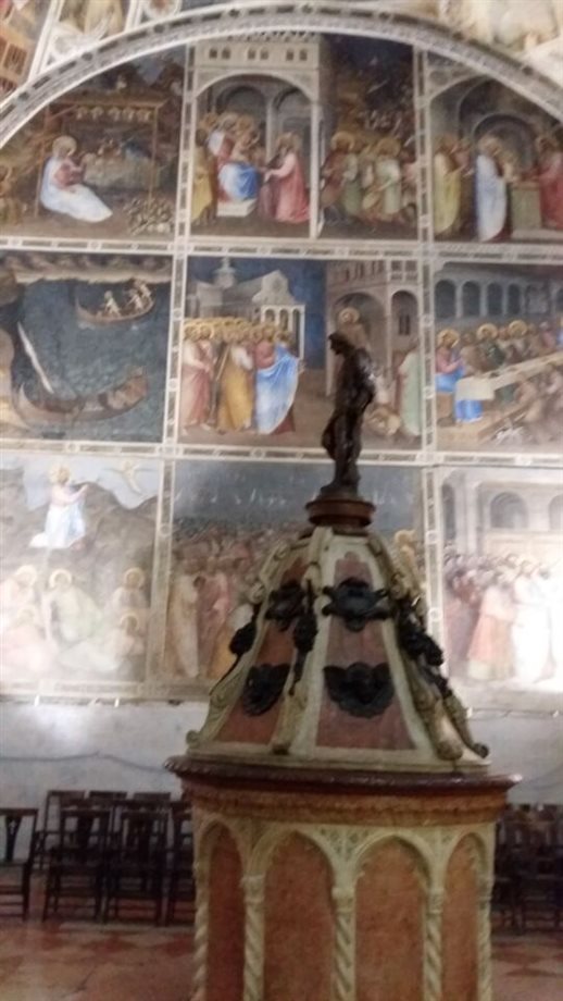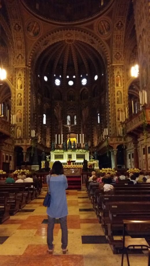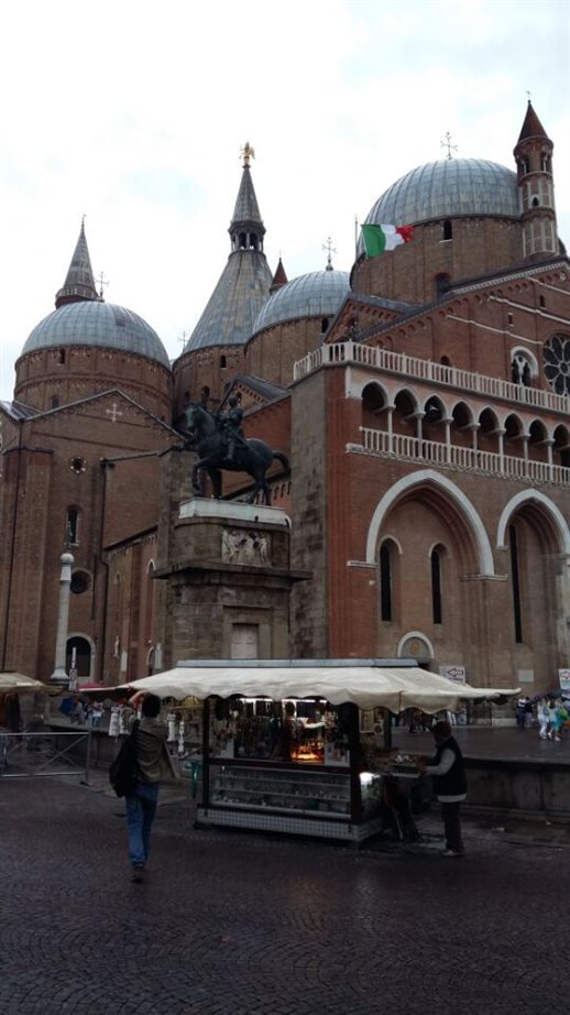 下午,老师们来到帕多瓦最著名的教堂圣安东尼奥大教堂,这是一座建筑风格拜占庭式,装饰带有哥特风格的教堂,气势宏伟。全世界祭奠拜圣安东尼奥的信徒都涌向这里。教堂外面耸立着多拿泰罗的著名雕塑骑士。