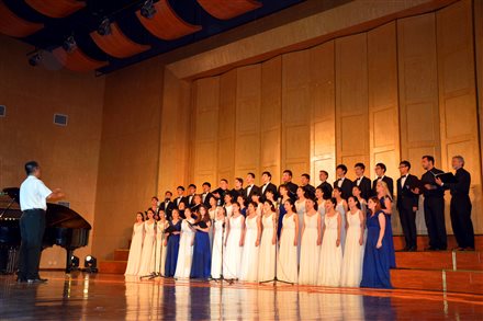 余磊老师指挥中美两校学生合唱中国歌曲《青春舞曲》 摄影:王安荻