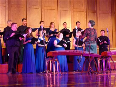 音乐会在阿尔弗莱德大学室内合唱团合唱的美国歌曲《fields of gold 》(金色田地)中拉开帷幕。合唱团指挥是阿尔弗莱德大学声乐教授Luanne crosby女士。