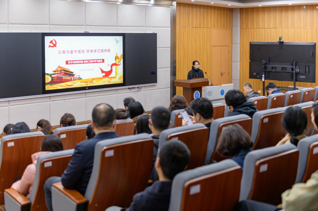 会上,院党委书记郭秀蓉首先带领大家学习教育部2022年公开曝光违反教师职业行为十项准则的典型案例和习近平总书记关于师德师风建设的重要论述。她强调,教育要坚持立德育人的根本,学院对师德失范行为“零容忍”,全院教职工要以案为鉴,严守学术规范与学术诚信,构建和谐的师生关系,敬业自律,做无愧于时代的人民教师。