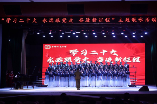 八十多名师生在弘毅堂参加了由学校举办的“学习二十大,永远跟党走,奋进新征程”主题歌咏比赛。