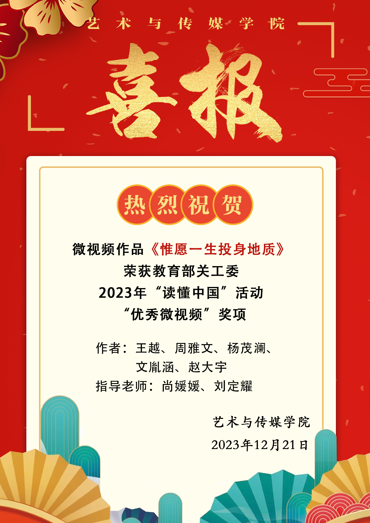优秀微视频《惟愿一生投身地质》是亚洲色吧 学生王越、周雅文、杨茂澜、文胤涵、赵大宇在尚媛媛、刘定耀两位老师的指导下,以地球科学学院退休教师曾广策教授为典型人物制作而成的,作品教育年轻的地质人“只问信仰,只问初心,只问感恩,无问其他。”