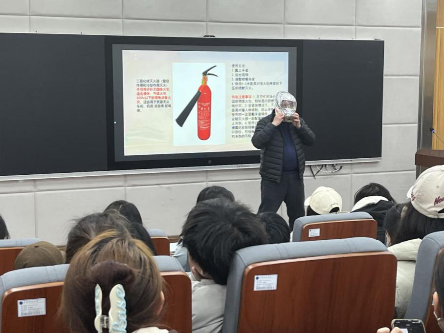 为做好新学期学生安全教育管理工作,学院组织开展了系列安全检查工作,筑牢安全防线。通过辅导员走访宿舍、工作室、办公楼等公共区域和学生活动场所进行安全隐患排查;同时利用学期初召开的主题党日、班团会、学生组织座谈会等进行安全知识的讲解和普及;并制作消防安全主题的微信推文《拒绝“燃”冬,安全用电》,以电子安全宣传手册的形式发给学院全体学生;邀请保卫处消防科的老师来学院开展安全教育讲座并针对灭火器的使用进行现场教学等。结合“他检”和“自检”,督促学生遵守安全管理规定,重点整改电动自行车进 楼道、飞线充电、挤占消防通道等情况,做好防火灾、防触电、防事故等工作,及时消除各类安全隐患。