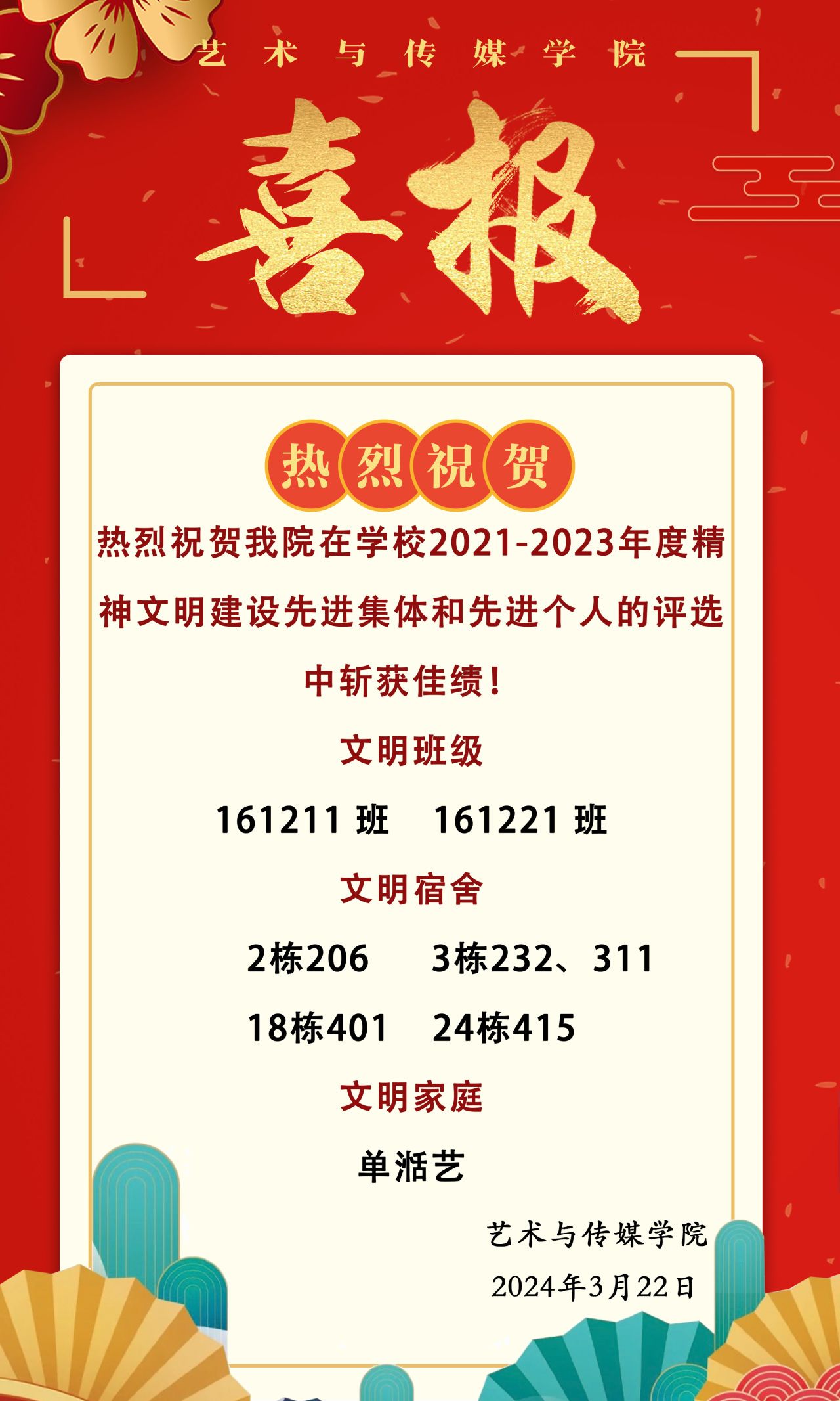 喜报|热烈祝贺亚洲色吧 在学校2021-2023年度精神文明建设先进集体和先进个人的评选中斩获佳绩!