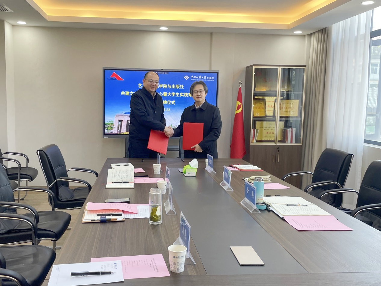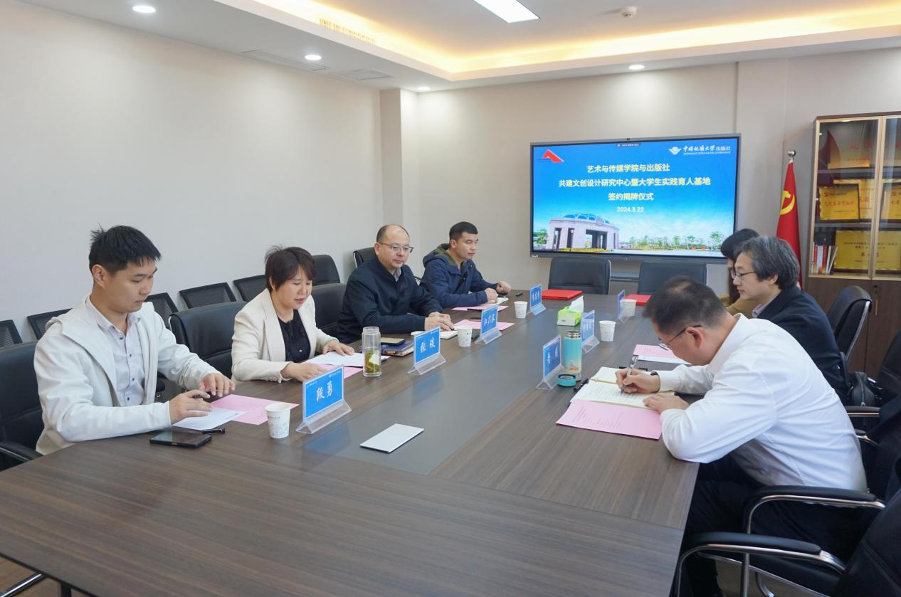 、学校出版社举行共建文创设计研究中心暨大学生实践育人基地签约揭牌仪式。出版社党总支书记、社长江广长、副总经理张琰和综合业务部相关负责人,亚洲色吧