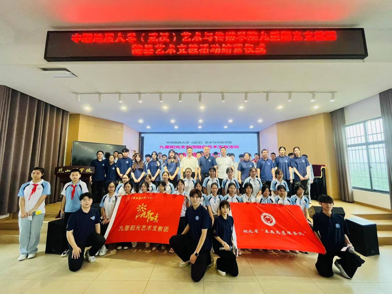 九里阳光艺术支教团随县分队在学院党委书记晋曦、党委副书记边建华、团委书记单湉艺老师的带领下前往湖北省随州市随县烈山湖学校与安居镇第二小学开展了为期12天的艺术支教活动。以艺术教育传播为形式,立足艺术支点,把握美育方向,为当地的孩子们送去优质的艺术教育资源。