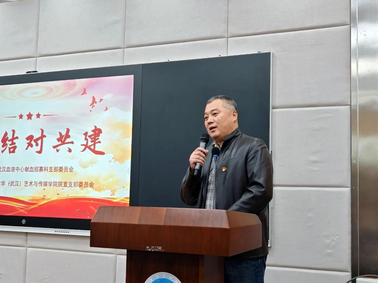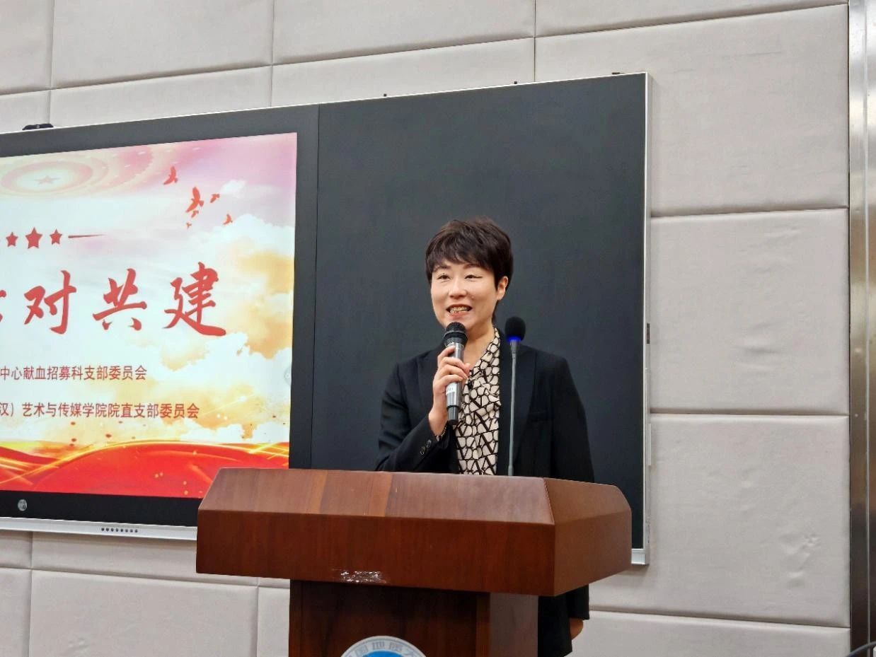 在艺媒楼1104报告厅开展了“热血担当,青春有我”无偿献血主题分享及支部共建活动。武汉血液中心党委委员、副主任杜思颖,武汉血液中心献血招募科王丹,武汉血液中心献血招募科党支部书记顾军,亚洲色吧