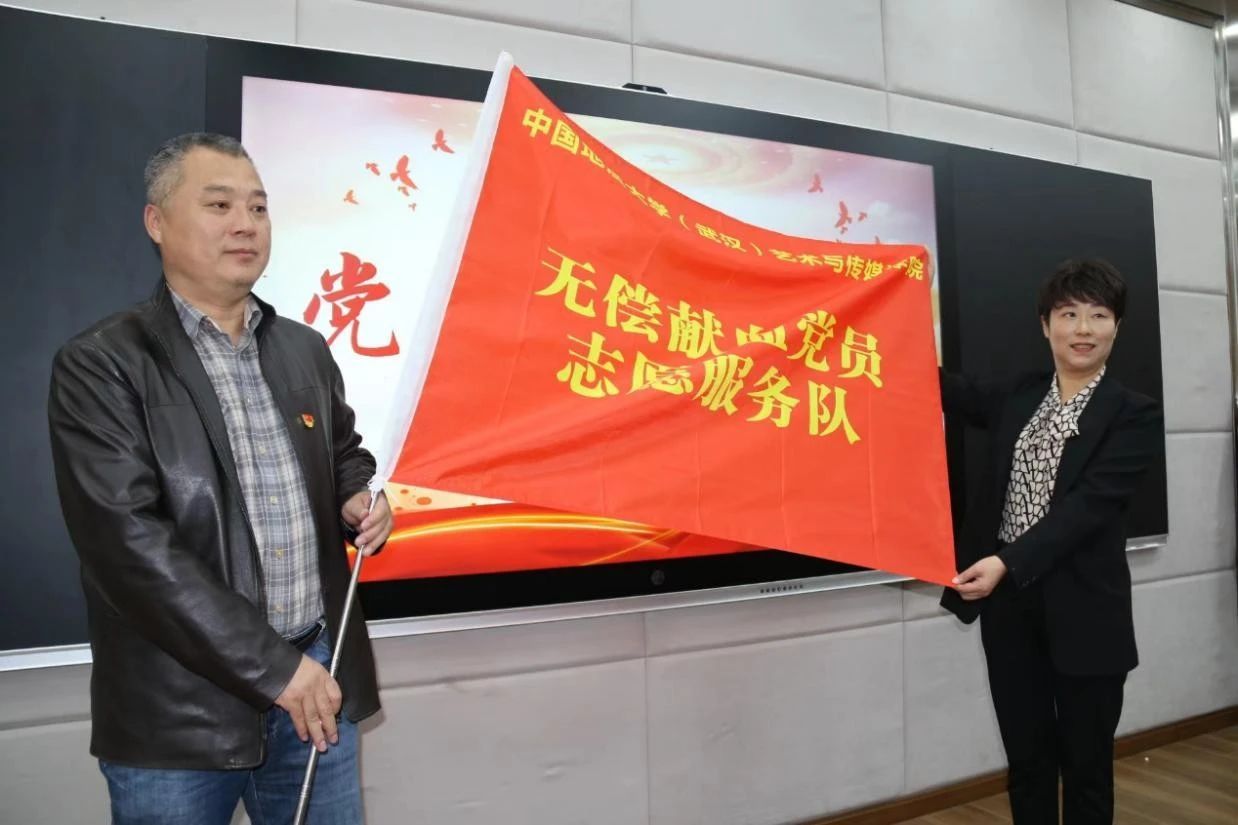 授旗——“无偿献血党员志愿服务队”,双方将在未来共同开展相关志愿服务活动。