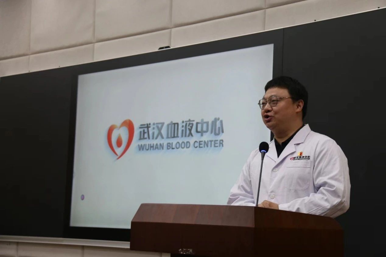 接下来,武汉血液中心党委委员、副主任杜思颖强调了本次共建活动的重要意义,指出无偿献血是一件利人利己的善事,并对学校和学院多年来对该项目的支持表达了感谢。杜主任还向大家现场分享了优秀献血者的感人事迹,这些故事温暖人心、极具力量。