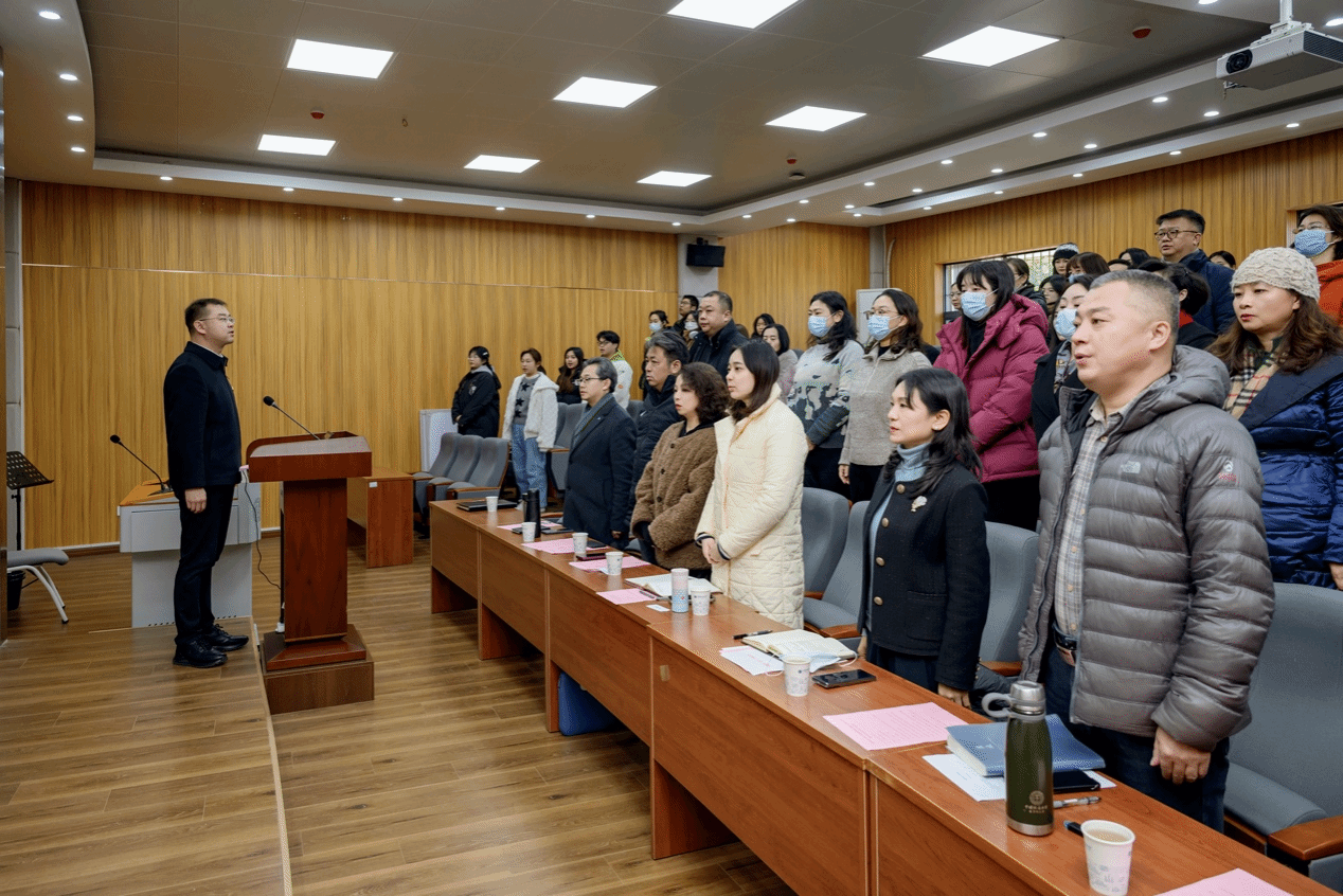 大会在庄严的国歌声中拉开帷幕。张梅珍副院长宣读会议批复文件,何清俊院长作学院2024年工作报告和财务报告。全体教职工通过举手表决的方式通过了院长工作报告,杨喆副院长宣读了学院教职工大会关于院长工作报告的决议。
