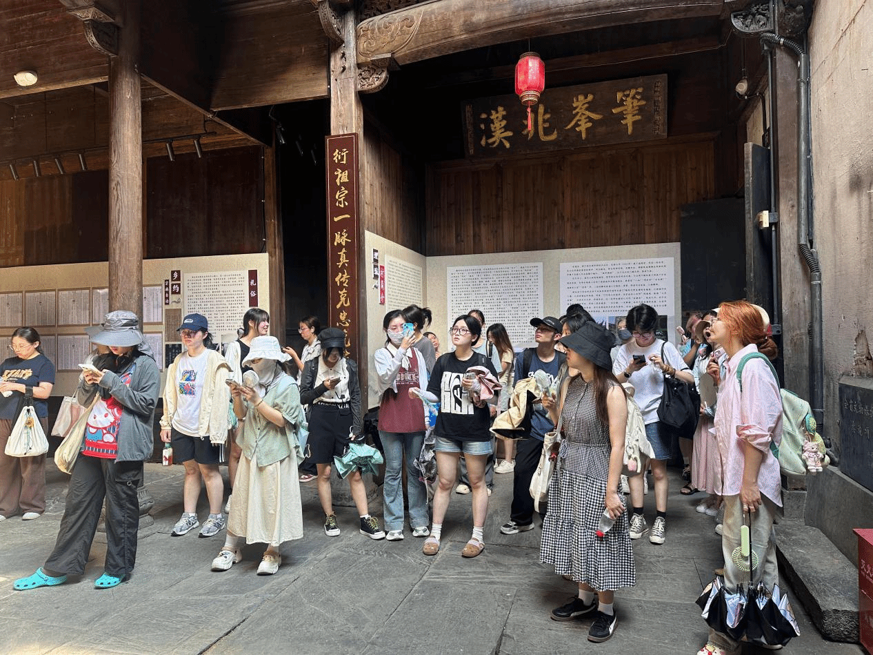7月5日中午,师生们顺利抵达江西省上饶市婺源县。婺源理坑村历史悠久,建村于北宋末年,素有“山中邹鲁”之美誉。这里保存着大量明清官邸,如吏部尚书余懋衡的“天官上卿第”、尚书余懋学的“尚书第”,还有独具特色的小姐楼等。这些建筑粉墙黛瓦、飞檐戗角,“三雕”工艺精湛,与山水环境浑然一体 ,是徽派建筑的杰出代表。