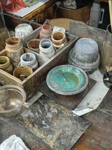 第七天,我们一起前去墨都进行研墨学习,整个厂分为两个厂区,墨厂和歙砚厂。在墨厂,可以参观工人制墨,有对比松烟墨和油烟墨,同学们可以体验制墨和描金。