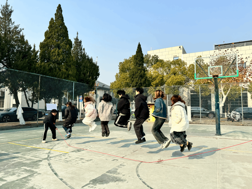 比赛当天,参赛队员们陆续到达场地,原本空旷的篮球场逐渐变得热闹非凡。各班级队伍迅速集结,有序地进行热身活动。尽管热身过程中出现了一些困难,如熟悉队形、调整间距、掌握节奏等,但同学们并未气馁,每一次绊绳都是对技巧的一次磨练。