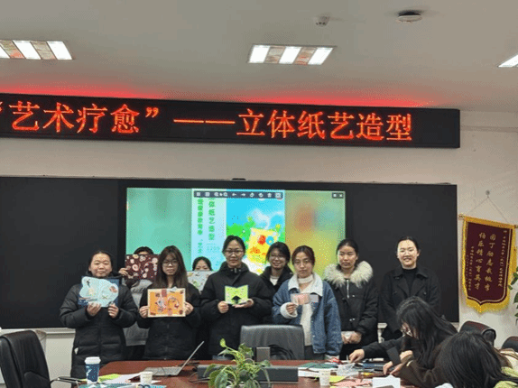 觅灮美育名师工作室与“艺”心为你心理驿站承办的心理健康教育季——“艺术疗愈”系列活动之立体纸艺造型在学院1209会议室顺利举办。觅灮美育名师工作室负责人徐莉,成员刘燕晓、祖予希,学工组辅导员曾戈晖,兼职辅导员曹彬彬等到场参与指导。