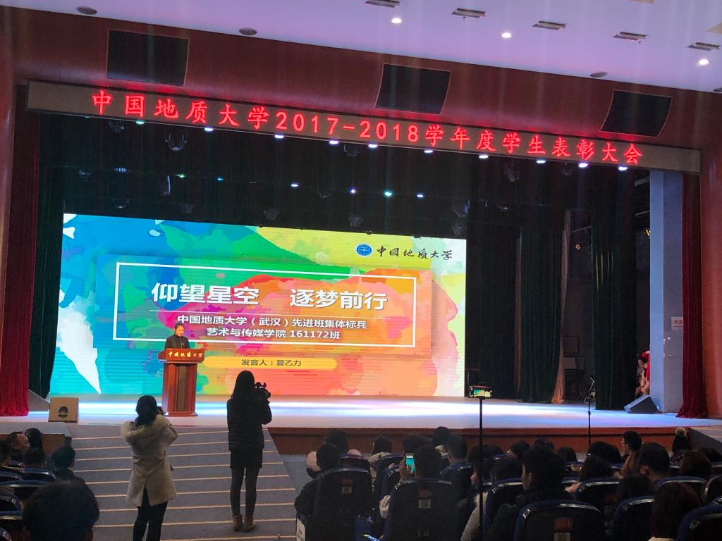 本科2017级161172班班长夏乙力同学作为年度先进班集体标兵获奖班级代表,以《仰望星空,逐梦前行》为题做大会主题发言,分享了亚洲色吧