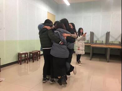 第二环节由主持人公布在场同学的性格测试结果,如指挥者、影响者、支持者等;第三环节是游戏——“同舟共济”,同学们分成男女两组,每组七人,要站在越来越小的报纸上,大家发动集体的力量,顺利完成了比赛。