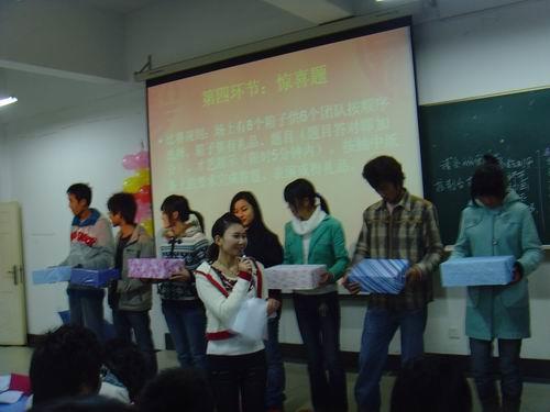 赛前,由全体人员共唱共青团团歌。接着比赛拉开了帷幕。在必答题环节,6支代表队的得分不分高下。而在抢答题和风险题环节,几支代表队你争我“抢”,凭着对十七大的了解与关注,为本队“加分”添彩。经过四个环节的激烈角逐。广电代表队以230分的成绩夺魁,环艺代表队与动画代表队分别名列第二第三。