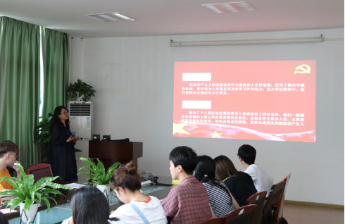 党委书记郭秀蓉老师主讲,党校负责人单湉艺老师主持,第十期党员发展对象培训班全体成员参加。