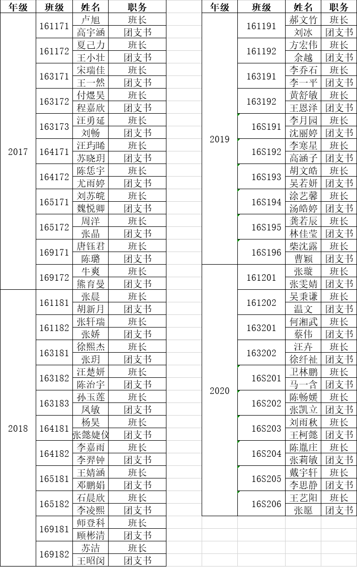 亚洲色吧 2020-2021年度本科生班长团支书名单公示