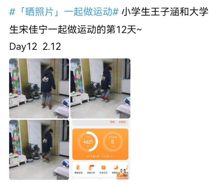 的11名志愿者带领着对接的中小学生一起,通过钉钉、喜马拉雅等网络平台坚持打卡,每天运动不少于30分钟,连续坚持十四天。运动方式多种多样,有跳绳、仰卧起坐、羽毛球等多项运动。们和中小学生不仅在运动中强身健体,获得了成就感,也为建设健康中国贡献力量,同时他们在运动中相互理解,通过合作完成任务,也是对奥林匹克精神的弘扬。