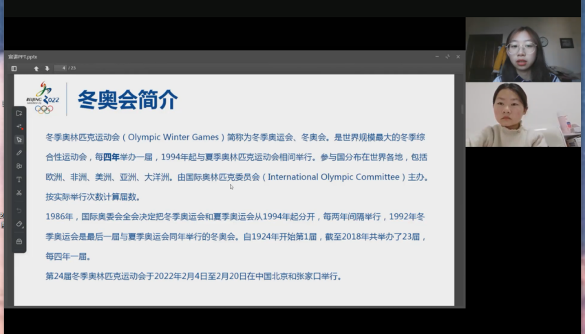 的志愿者们陪伴着中小学生们,共同看冬奥,一起过新年,参加体育运动,传播冬奥文化。