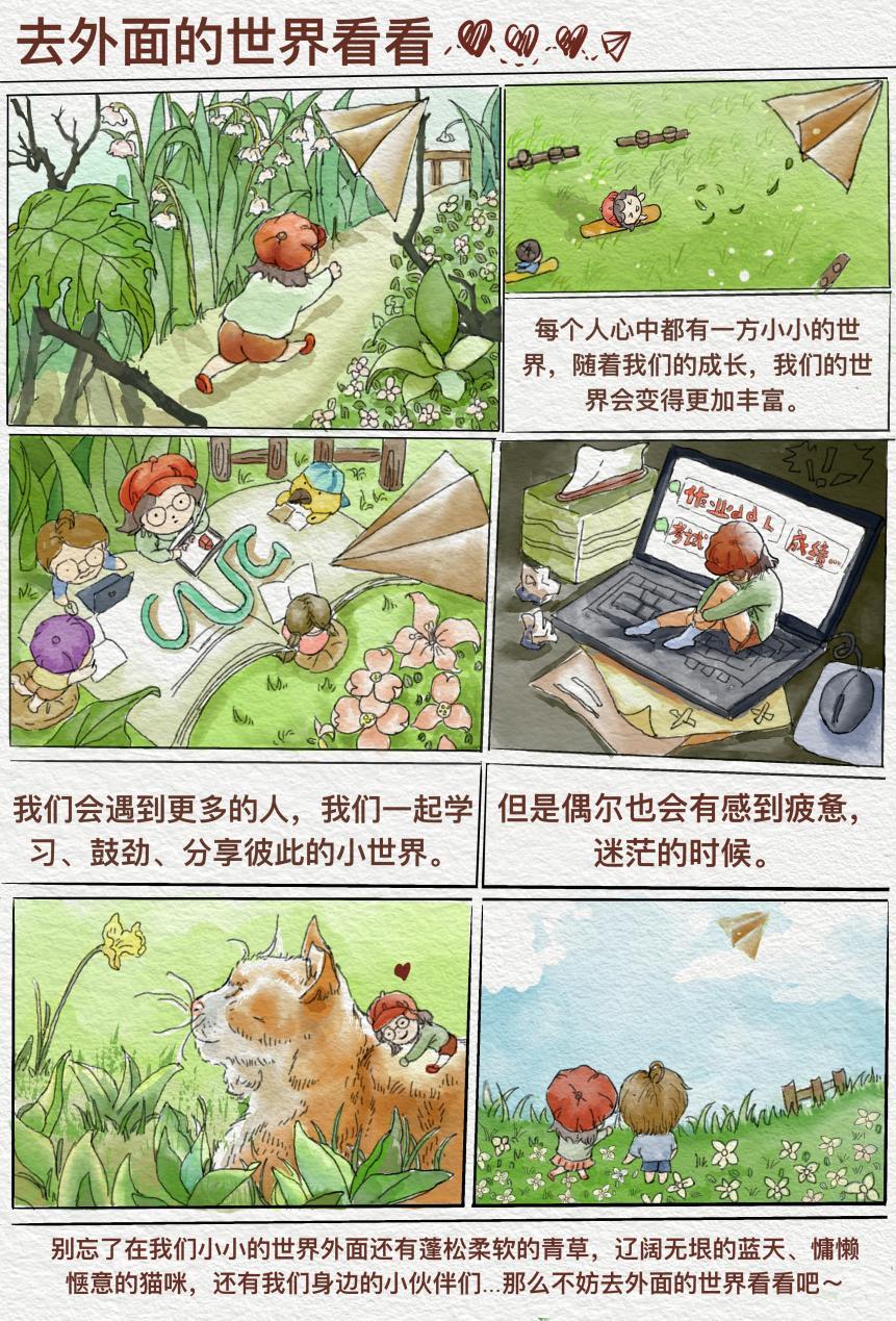 作者采用板绘形式,运用水彩表达技法,画面温馨和谐,每个人心中都有一方小小的世界,随着我们的成长,我们会不断感受身边的美,世界也会变得丰富多彩。
