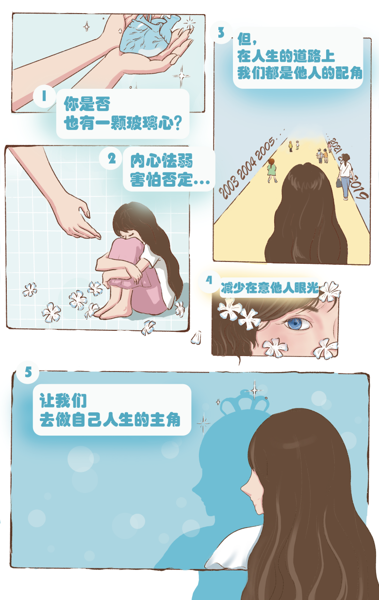 作品表达了内心敏感人群的内耗焦虑。过分在意他人眼光则无法真正做自己,学会更多地把时间与精力花在自己身上,停止思想内耗,去做自己人生的主角。