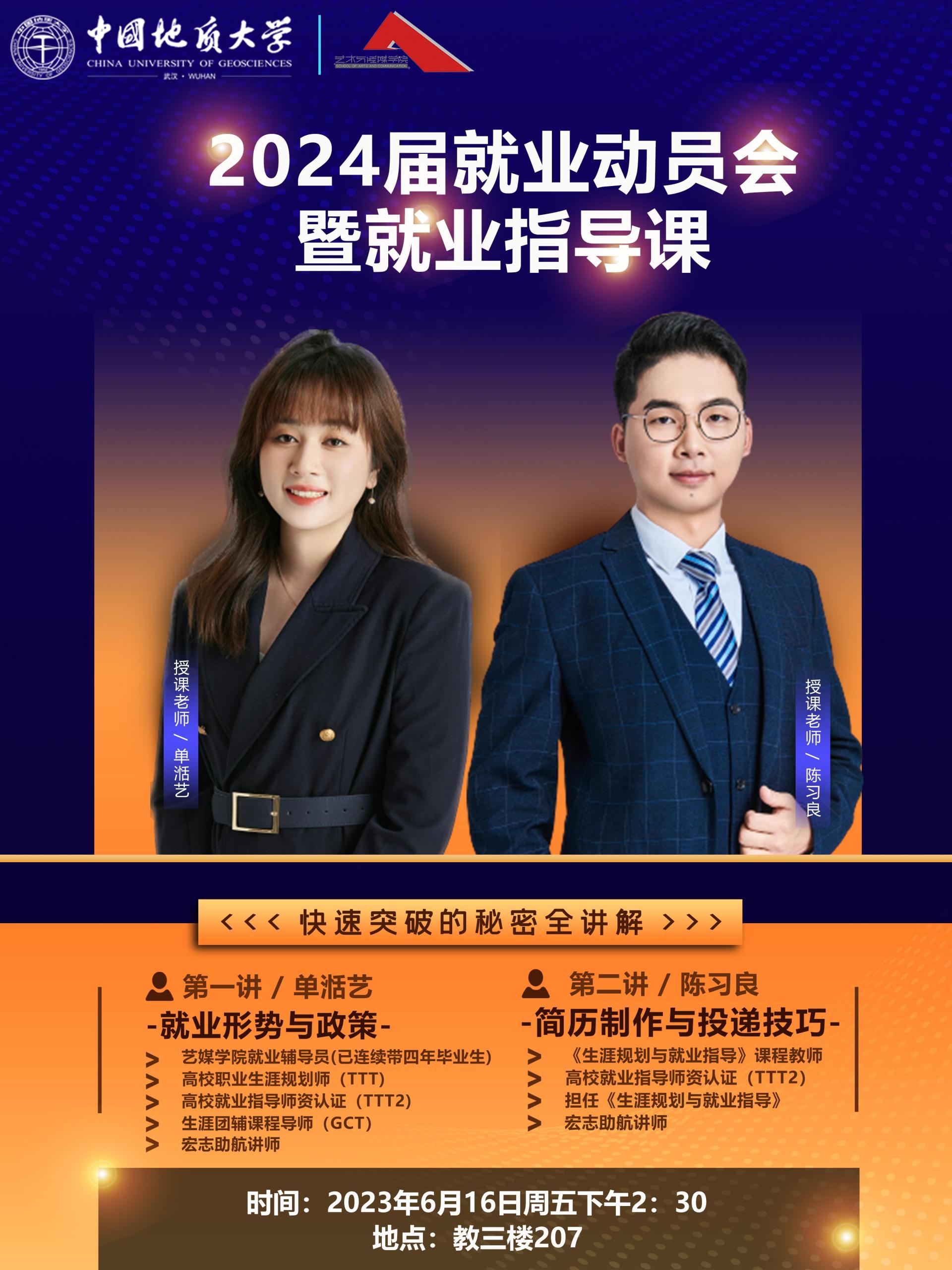 2024届就业动员会暨就业指导课在南望山校区教三楼207教室举行。本次就业指导课以线上和线下的方式相结合,课程内容分为就业形势与政策、简历制作与投递技巧两个部分。