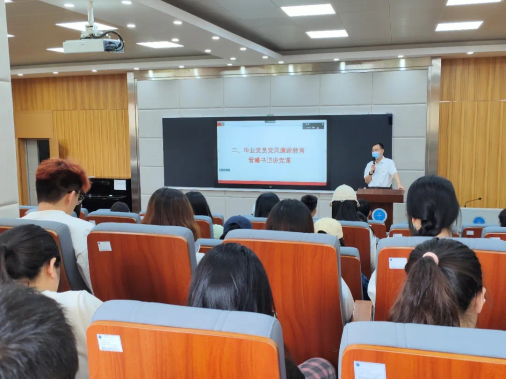 为做好2023届毕业生党员教育及组织关系管理工作,亚洲色吧 党建办组织开展毕业生廉洁教育上好毕业生党员离校前“最后一堂党课”20236115:00,亚洲色吧 于1104召开毕业生党员大会。提高毕业生的廉洁从业意识,牢固树立廉荣贪耻的人生理念,扣好人生的第一粒扣子。以信仰之光照亮青春之路,激励全体学生坚定信念积极投身于以中国式现代化全面推进中华民族伟大复兴的火热实践中