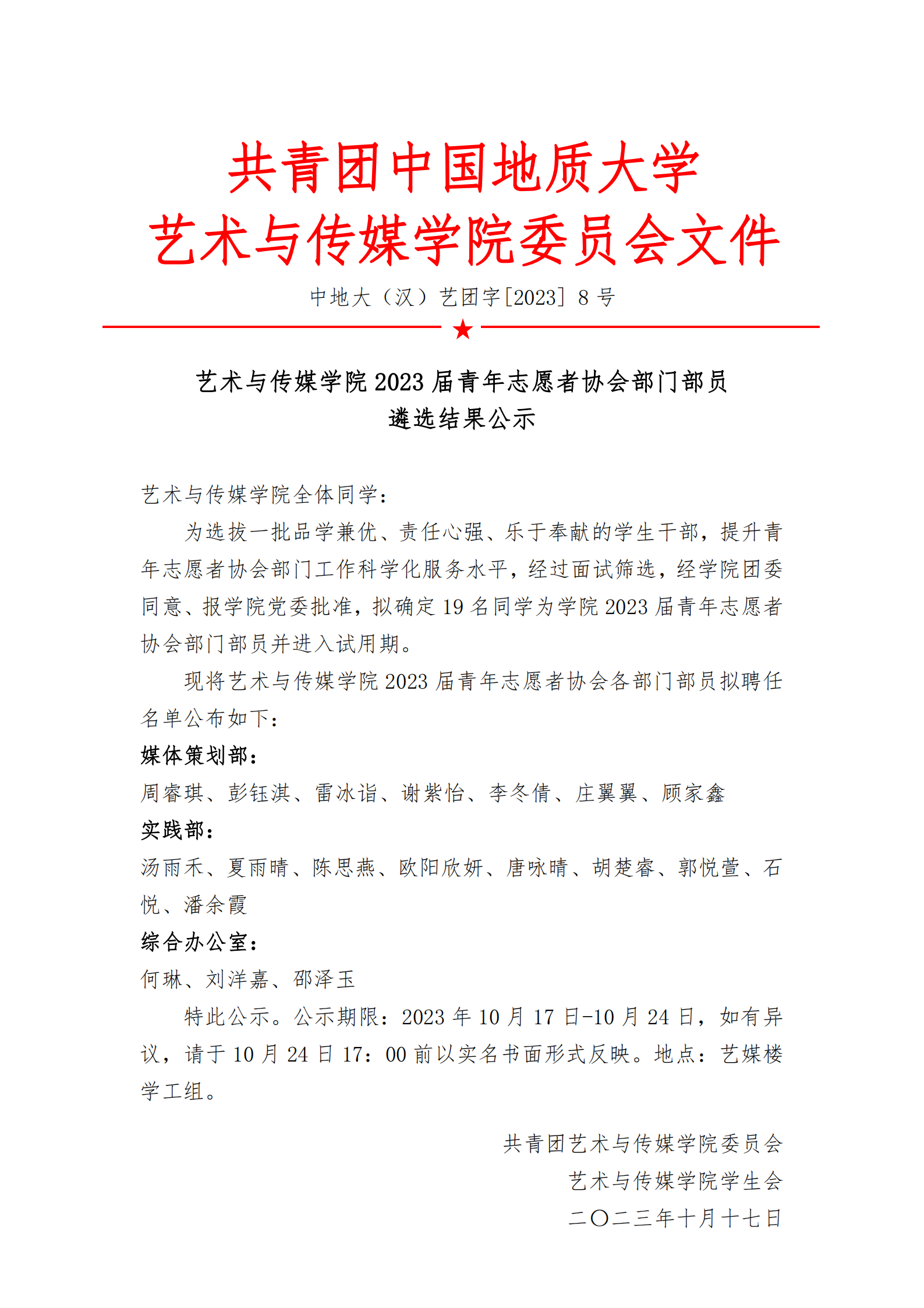 通知 | 亚洲色吧 2023届青年志愿者协会部门部员遴选结果公示