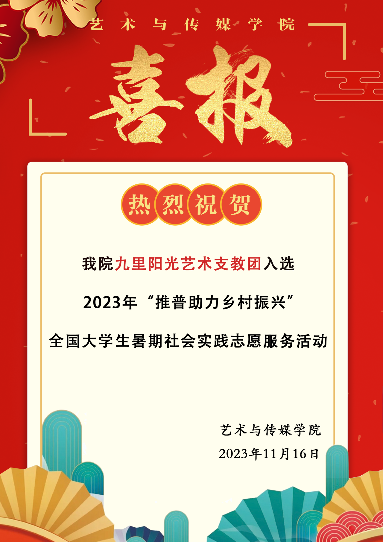 喜报|热烈祝贺亚洲色吧 九里阳光艺术支教团入选2023年“推普助力乡村振兴”全国大学生暑期社会实践志愿服务活动
