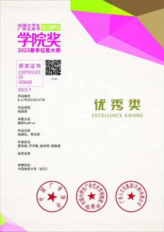 依托学校学院创新平台,我们积极创新拼搏进取,在大创、挑战杯、大广赛等多个专业比赛中砥砺向前。郭嘉鑫参与了大学生创新创业项目,并完成了大创校级结题,她在中国大学生广告艺术节2023春季征集大赛的作品,被评为学院优秀类作品;张婷婷同学参加的第十四届“挑战杯”红色专项比赛的作品,被推送至国赛组委会;邓语晨同学参加了2022年湖北省大学生文化创意作品大赛并获得三等奖。