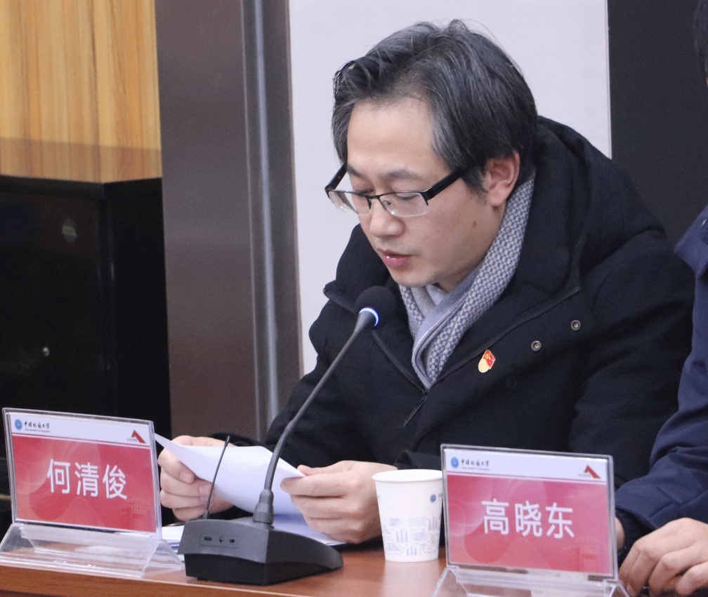 图2 学院党委副书记、院长何清俊主持动员会
