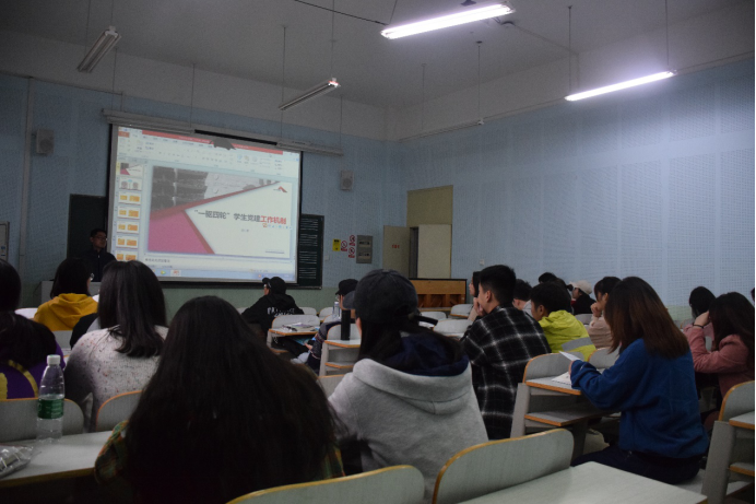 党建工作机制,他详细地讲解了“一驱四轮”的学生党建工作机制和“五位一体”的工作保障,并向大家介绍了重新调整后的党支部组织结构,党支部的规范与命名,并向大家介绍了学院党委、学生党建办公室、学生党支部、支部党小组、团支部各自的工作职责、党委委员组成及各自分工。